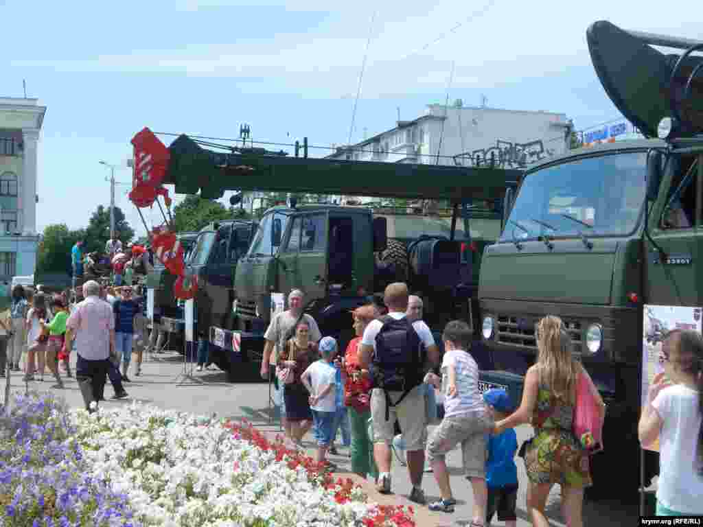 На площади Ленина были представлены образцы РСЗО «Град», пусковая установка ЗРК С-300, модификации БТР-80, бронеавтомобили, минометы, артиллерия, стрелковое оружие, снаряжение морской авиации, водолазных и других подразделений Черноморского флота.