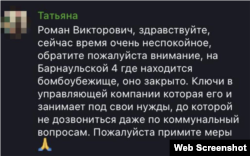 "Сейчас время очень неспокойное, обратите, пожалуйста, внимание. На Барнаульской 4 находится бомбоубежище, оно закрыто. Ключи в управляющей компании, которая его занимает под свои нужды, до которой не дозвониться даже по коммунальным вопросам", — написала Татьяна.