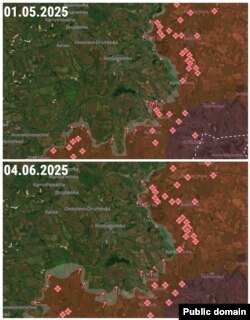 К концу мая российское наступление еще больше ускорилось: только за последнюю неделю месяца ВС РФ захватили 18 украинских населённых пунктов и около 200 квадратных километров.