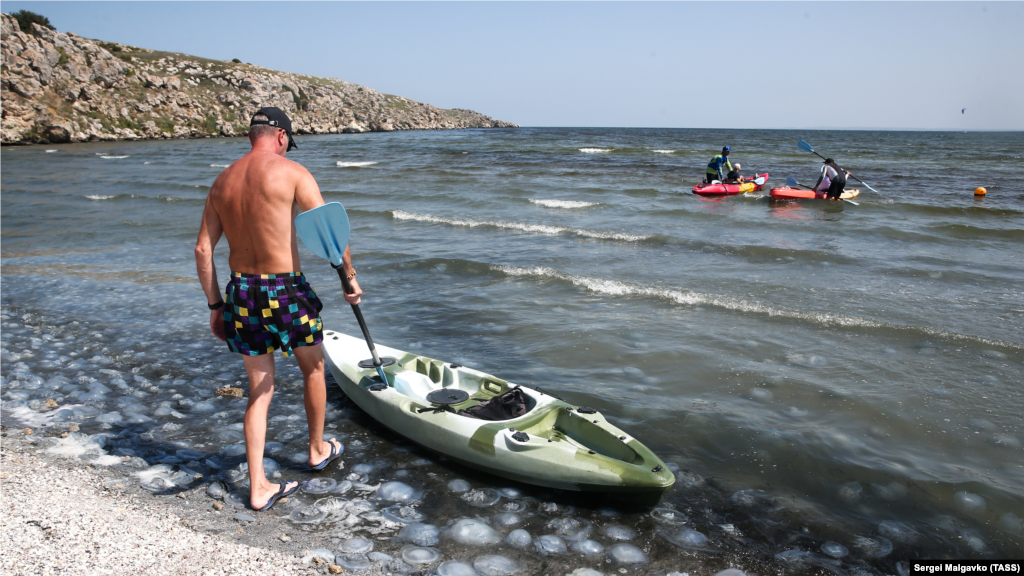 Жалят и оставляют следы: тысячи медуз у побережья Азовского моря в Крыму (фотогалерея)