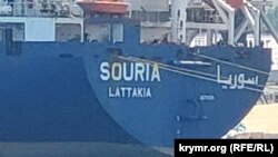В акватории торгового порта Феодосии замечено судно SOURIA (IMO: 9274331) под сирийским флагом. Как сообщает корреспондент Крым.Реалии, судно стоит возле зернового терминала морского торгового порта Феодосии.