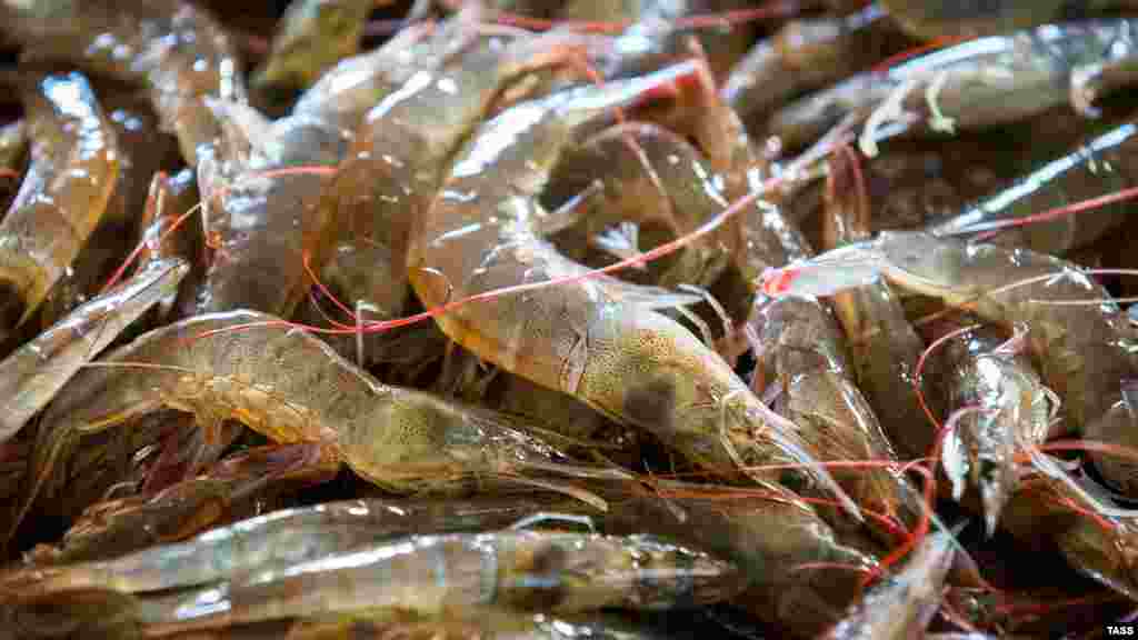 В прудах креветочной фермы, которая находится в селе Портовое Раздольненского района, осенью начался вылов креветок. Работники собирают улов и доставляют в цех переработки, который находится на территории бывшего рыбколхоза. Далее креветки промывают, отбирают и готовят к заморозке.
