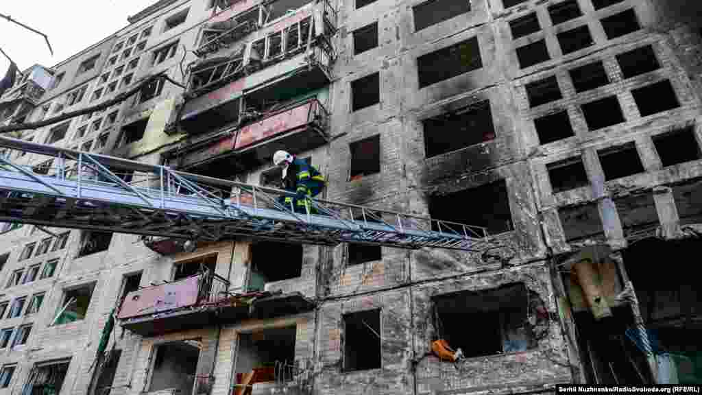 Из-за обстрела в Оболонском районе Киева 14 марта произошел пожар и частичное разрушение девятиэтажного жилого дома. Один человек погиб, троих госпитализировали, девятерым оказали помощь на месте, отметили в ГСЧС Украины.