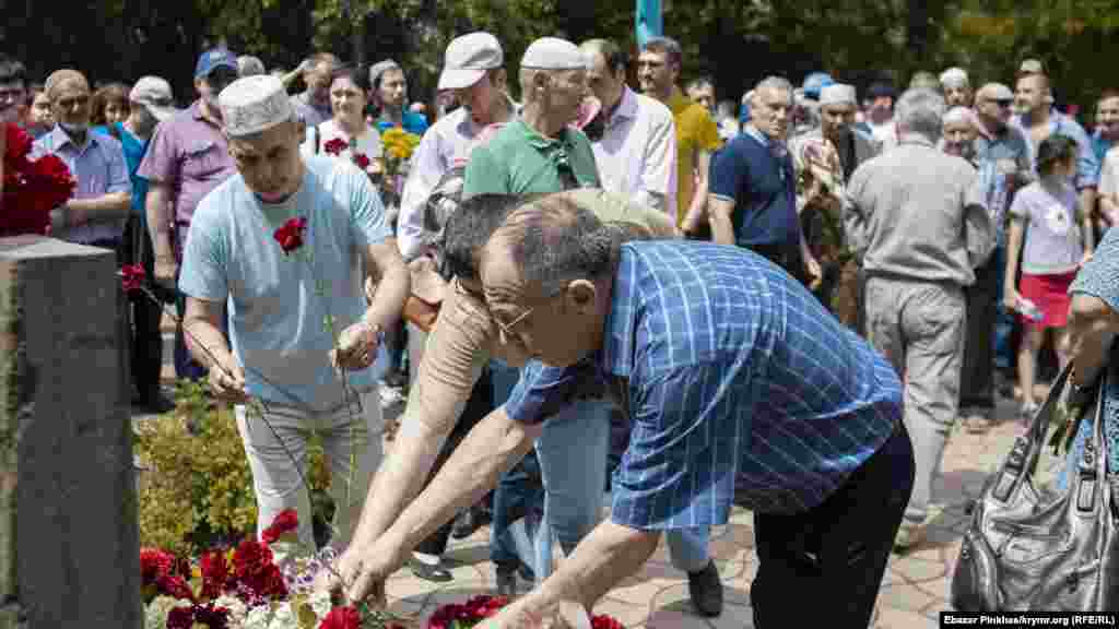 В Симферополе почтили память жертв депортации крымских татар. Участники траурной акции собрались у памятного знака в сквере возле железнодорожного вокзала Симферополя. Активисты возложили цветы к камню в память о жертвах депортации, и почтили их минутой молчания. Место проведения акции в течение всего времени было окружено сотрудниками российской полиции и Росгвардии.