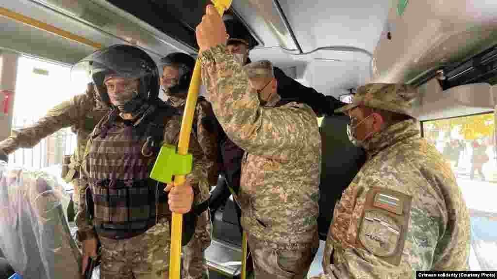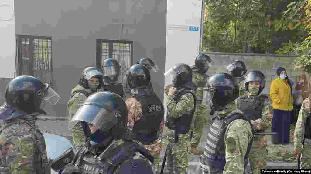 Утром 25 октября у здания Крымского гарнизонного военного суда в Симферополе собрались крымские татары, чтобы поддержать фигурантов красногвардейского «дела Хизб ут-Тахрир». В суде адвокаты по видеоконференцсвязи должны были принять участие в рассмотрении апелляционной жалобы на приговор по данному делу. Российские полицейские потребовали собравшихся разойтись, после чего сотрудники ОМОНа начали заводить собравшихся под судом в автобус, в том числе женщин.