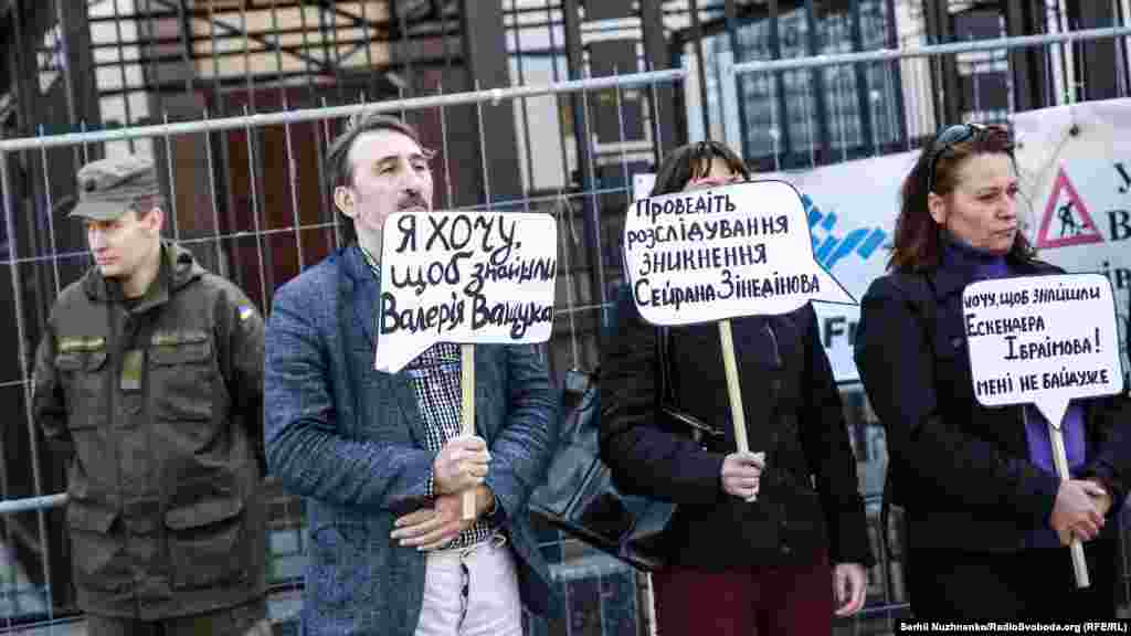 Под посольством России в Киеве в рамках информационной кампании «FIND&FREE» проходит XV акция «Где Эрвин?». Активисты показали перформанс, где рассказали о чувствах родственников похищенных и пропавших людей в Крыму.