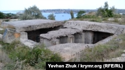 Спускаюсь в сторону Севастопольской бухты. По пути встречается огромный котлован и непонятные бетонные развалины, на вид довольно старые.